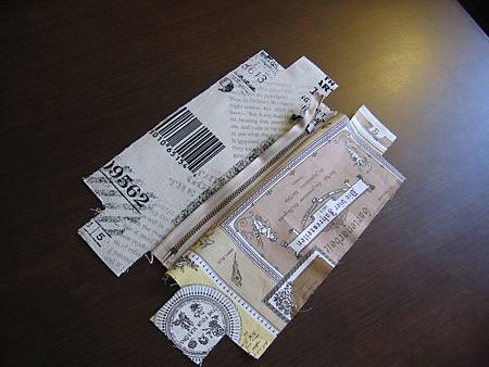 1. 以紙型正面畫出表布與襯 以紙型背面畫裡布 表布燙襯後與裡布夾車拉鍊