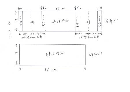 3. 表布與裡布分開 各自車兩側 裡布一側留5cm返口 表布兩側車至記號線9cm處不車